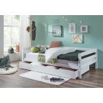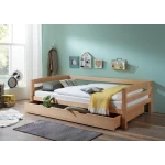 EENPERSOONS BED GEMAAKT VAN MASSIEF BEUKENHOUT MET DE MOGELIJKHEID OM EEN ONDERBED OF OPBERGLADE TOE TE VOEGEN