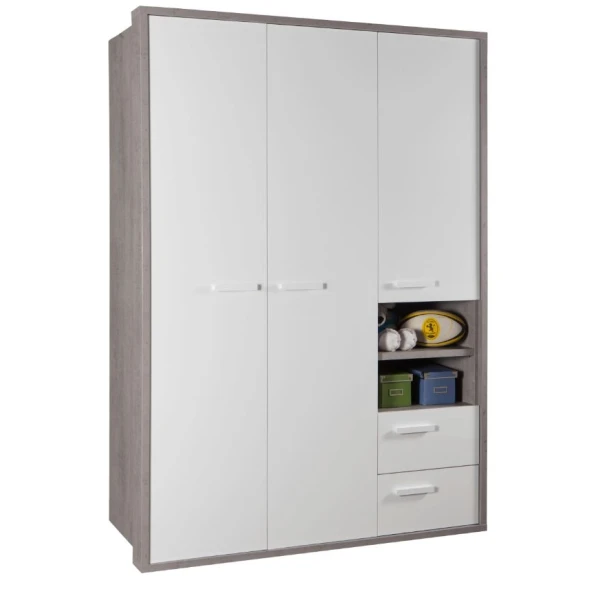 De Estelar kledingkast heeft een modern design en combineert witte en cementtinten, waardoor licht en netheid in de kamer komt . Met drie deuren en twee laden heeft deze kledingkast een interne indeling waarmee je je kleding gemakkelijk kunt ordenen.