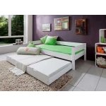 - Onderschuifbed: Bij dit eenpersoonsbed kan een uitschuifbed aan de onderkant worden toegevoegd, perfect voor kamers met beperkte ruimte of als extra bed voor gasten. De structuur kan ook gebruikt worden als extra opbergruimte voor kussens, dekens etc., indien een matras niet gewenst is.
