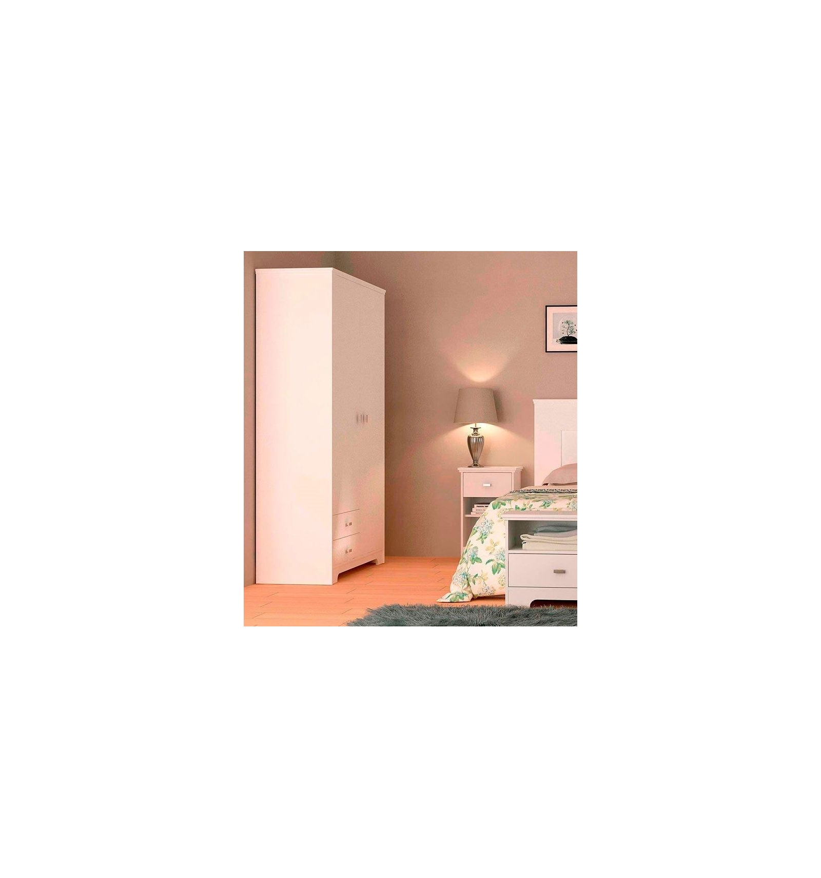 Cuenta con dos puertas que contienen una barra para perchas y un estante superior. Además, para sacar el mayor rendimiento al armario, también incluye 2 cajones en su parte inferior en los que podrás guardar toda aquella ropa que necesites tener más a mano.